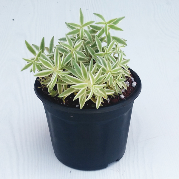 Common name(s): Variegated Star Sedum, Creme & Green Carpet Sedum, Variegated Stonecrop, Variegated Carpet Sedum