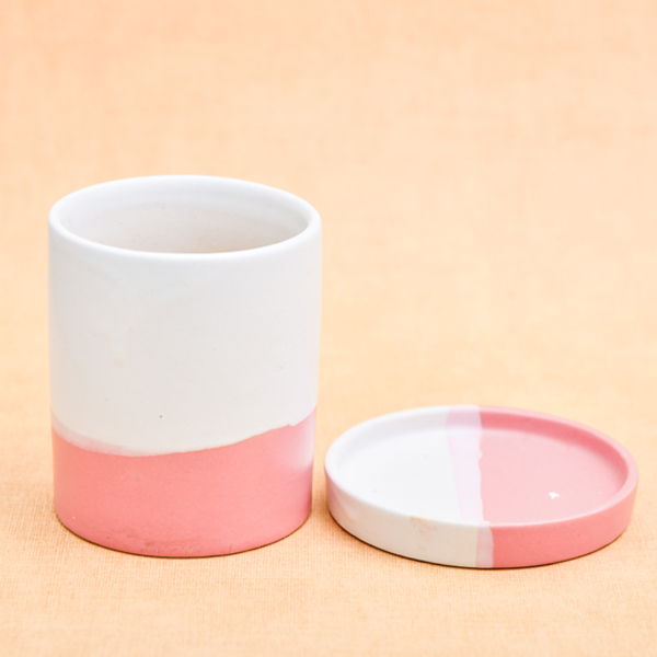 3.1 inch CP047 Cylindrical Ceramic Pot with Plate (White, Light Peach)