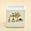 3.5 inch Warli Painting Marble Finish Square Box Ceramic Pot (Light Brown)