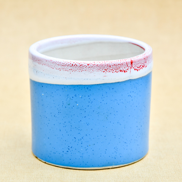 4.3 inch Cylindrical Ceramic Pot with Decorative Rim (Blue)